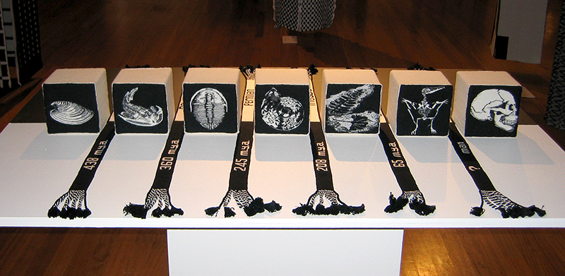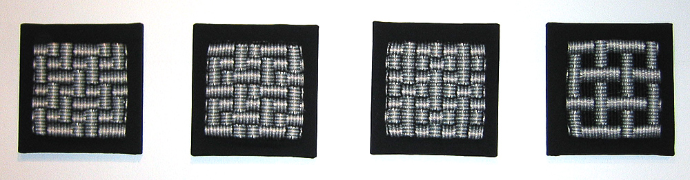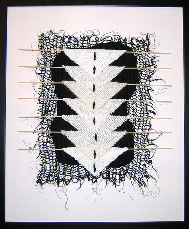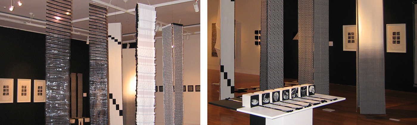 Sweeping Changes Concept 1 by Patricia ArmourExtinction by Elizabeth ArnoldJourney by Dianne DudfieldFragments 2001 AD by Anne FieldReflections by Wilson HendersonTo Stay or Go by Exhibition: Black WhiteKatie HindleFundamentals by Brigit HowittA Black and White Case for Recycling by Helen LukesA Snowflake With Flair by Margaret MecchiaThrough the Mists of Time by Robyn ParkerBlack on Black by Marilyn Rea-MenziesBlack Medallions by Barbara Wilson